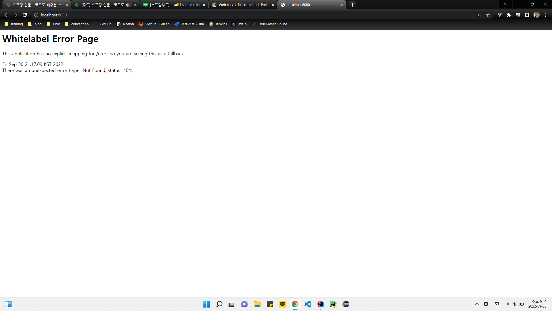 - 메인함수를 실행하고 localhost:8080에 아래와 같은 화면이 뜨면 성공입니다.