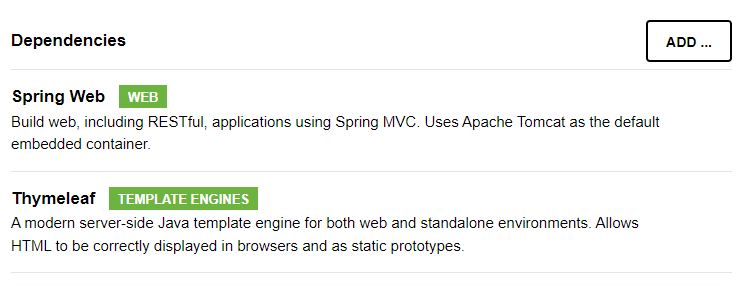 - Spring Web: 웹 프로젝트를 진행하기 때문에 추가