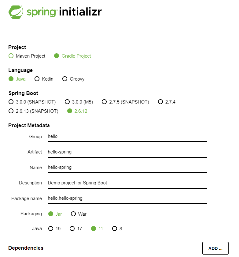 - 위, 사이트는 스프링부트를 기반으로 스프링 프로젝트를 만들어주는 사이트입니다.