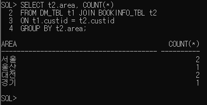 지역별 DM 발송 건수 통계를 구하는 SQL문