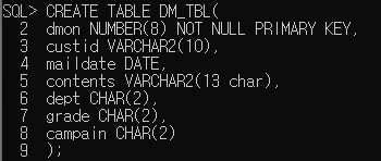 INSERT INTO DM_TBL VALUES (5,'eee',TO_DATE('20171224','YYYYMMDD'),'안녕하세요?','20','VV','C2');